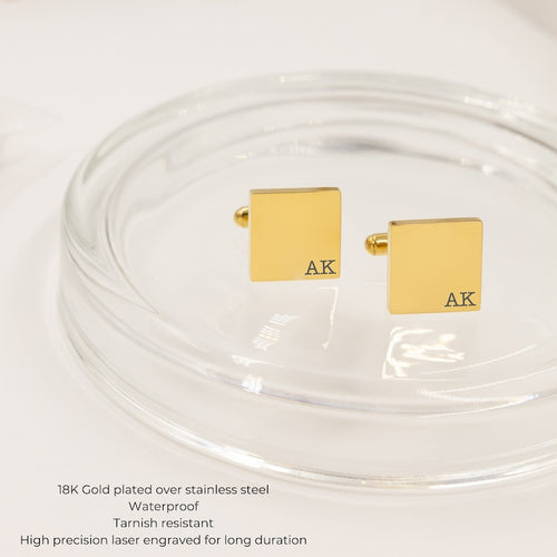 Custom Initial Cufflinks for groom, father of the bride, best man, customized wedding cufflinks, gold square cufflinks, Groomsman Cufflinks