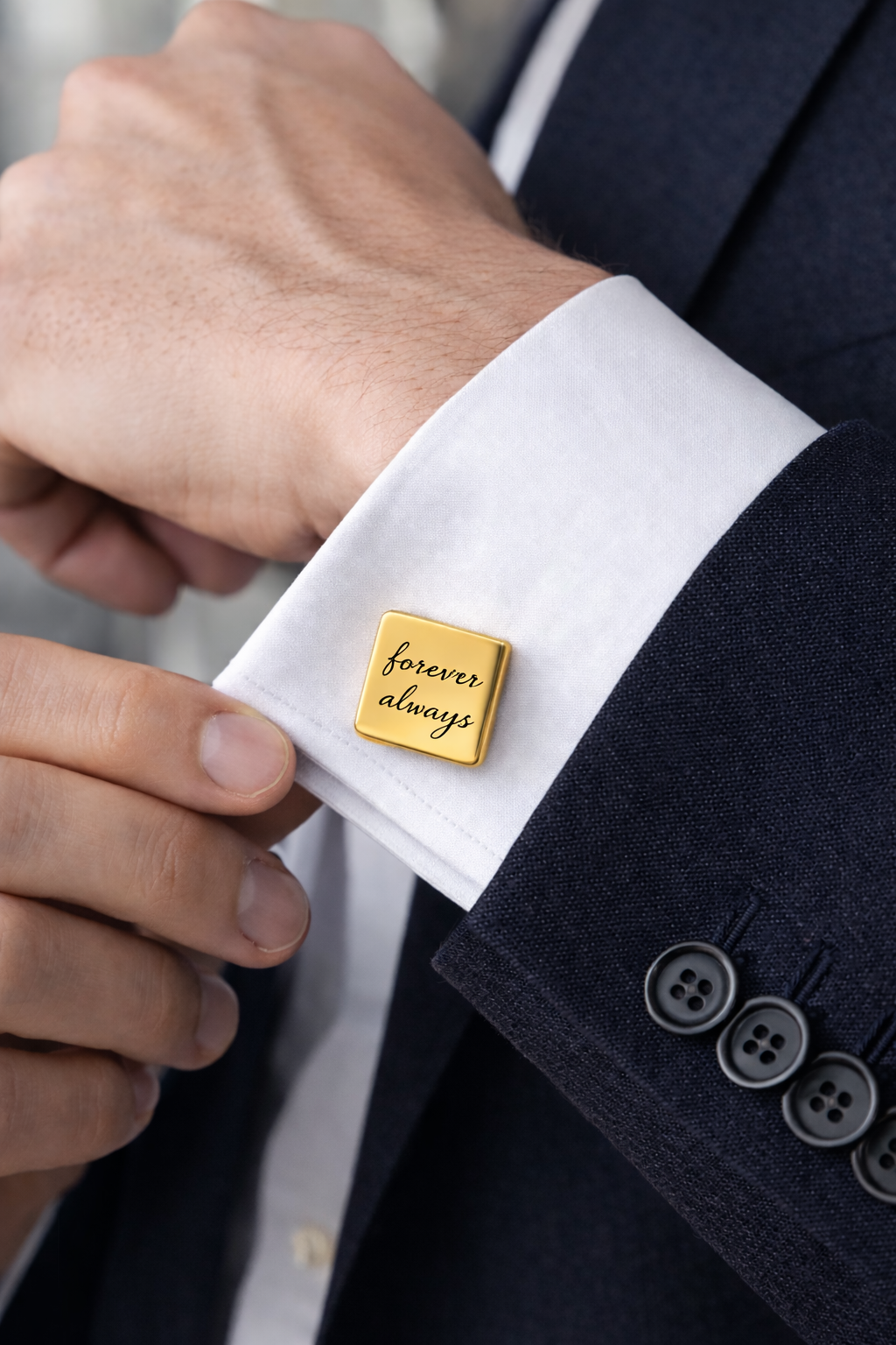 Personalised Square Metal Cufflinks – Custom Engraved Wedding & Formal Gift